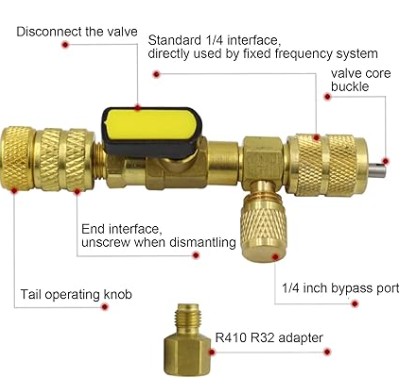 Extractor/Instalador de Núcleo de Válvula con Herramientas de Reparación de Línea de Aire Acondicionado de Puerto SAE 1/4 Y 5/16 de Tamaño Doble para R22 R134 R410 R32